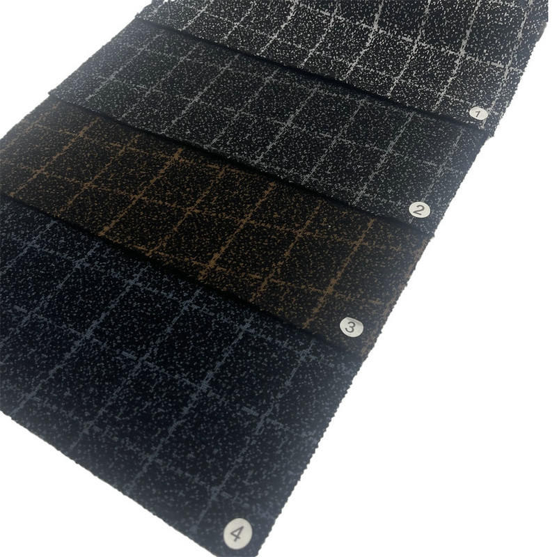 Fabrik ini, artikel 182808-1, ialah tekstil rajutan yang direka untuk pembuatan blazer. Ia dibina daripada campuran gentian 65% poliester, 27% nilon, 6% akrilik, dan 2% bulu, dengan jisim seunit luas 820g/m. Permukaan mengintegrasikan corak petak dan titik gabungan yang terbentuk semasa proses mengait. Komposisi gentian khusus ini mewujudkan ciri pelengkap: poliester memberikan kestabilan struktur, nilon meningkatkan ketahanan, akrilik menyumbang kepada loteng, dan bulu mempengaruhi rasa tangan kain. Berat dan binaan rajutan yang besar menyumbang kepada sifat langsir dan penebat fabrik, menjadikannya terpakai untuk pakaian berstruktur seperti blazer.