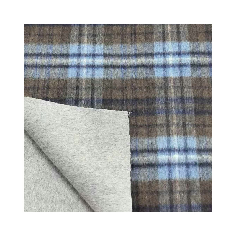 Fabrik ini, yang ditetapkan sebagai artikel ZZH25003, ialah tekstil tenunan berat yang terdiri daripada 50% bulu dan 50% gentian lain. Dengan jisim seunit luas 950g/m, bahan menunjukkan ketumpatan dan berat yang besar. Permukaannya menampilkan corak kotak-kotak yang menggabungkan ton biru dan coklat dalam pembentukan grid berstruktur. Kategori berat ini menyumbang kepada rintangan angin dan kapasiti penebat fabrik. Komposisi campuran bulu mempengaruhi sifat pengawalan haba tekstil. Spesifikasi teknikal ini menjadikan fabrik tenunan ini boleh digunakan untuk mantel musim sejuk yang memerlukan perlindungan yang besar daripada keadaan cuaca sejuk.