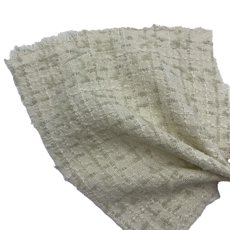 Fabrik ini, yang ditetapkan sebagai artikel 23017, ialah tekstil tweed tenunan jacquard yang terdiri daripada 100% poliester. Dengan jisim seunit luas 265 gsm, ia menampilkan binaan ringan yang sesuai untuk pakaian wanita. Pangkalan merah jambu menampilkan corak rama-rama yang disepadukan terus ke dalam fabrik melalui proses tenunan jacquard. Teknik ini mencipta definisi motif yang tepat dalam struktur tenunan. Komposisi semua poliester memastikan kestabilan dimensi dan prestasi yang konsisten semasa pengeluaran pakaian. Ciri teknikal ini menghasilkan fabrik dengan artikulasi corak yang jelas dan integriti struktur, menjadikannya terpakai untuk item pakaian yang memerlukan elemen reka bentuk terperinci dan kebolehpercayaan bahan.
