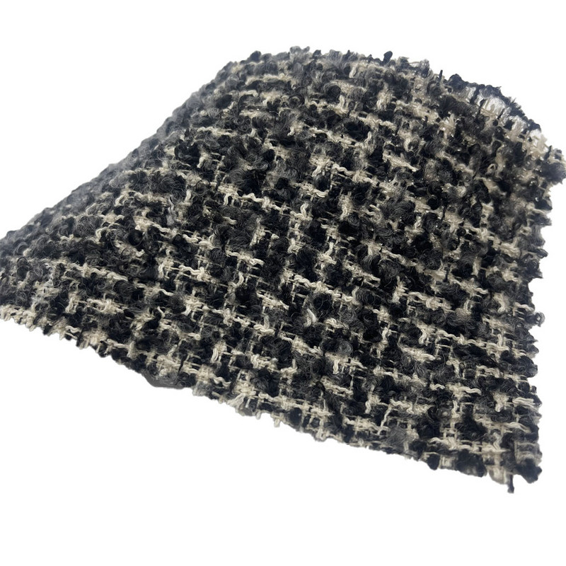 Fabrik ini, yang ditetapkan sebagai artikel 23515, ialah tekstil tweed yang terdiri daripada 77% poliester, 14% kapas, 4% bulu, 4% akrilik dan 1% nilon. Dengan jisim seunit luas 420 gsm, ia membentangkan pembinaan berat sederhana. Permukaannya menampilkan corak timbul yang digabungkan dengan struktur benang gelung, menghasilkan kesan sentuhan bertekstur. Campuran berbilang gentian menyepadukan kestabilan poliester, penyerapan lembapan kapas, sifat semula jadi bulu, loteng akrilik, dan tetulang nilon. Gabungan ini menghasilkan fabrik dengan dimensi permukaan dan integriti struktur. Ciri-ciri ini menjadikannya terpakai untuk pakaian yang memerlukan kedua-dua tekstur visual dan ketahanan berfungsi.