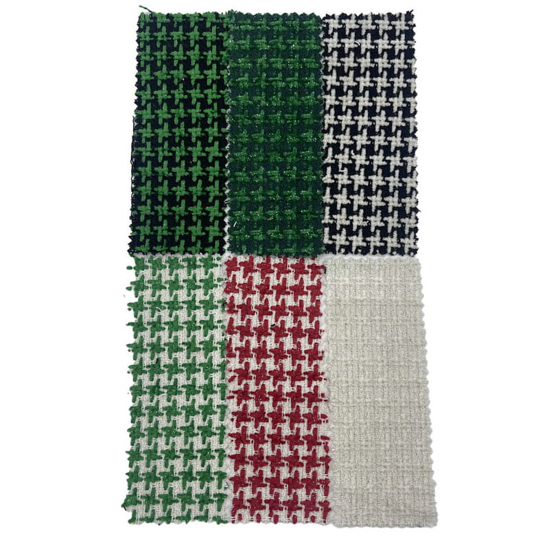 Fabrik ini, yang ditetapkan sebagai artikel 2410, adalah tekstil jacquard yang terdiri daripada 100% gentian lain. Dengan jisim seunit luas 550 g/m, ia membentangkan pembinaan berwajaran berat. Permukaan menggabungkan benang metalik dengan teknik timbul, menghasilkan corak timbul yang mengubah kedua-dua sifat visual dan sentuhan. Proses tenunan jacquard membolehkan penyepaduan tepat unsur-unsur logam ke dalam reka bentuk. Kaedah pembuatan ini menghasilkan fabrik dengan tekstur yang jelas dan kualiti pemantul cahaya. Berat yang ditentukan menyumbang kepada ketahanan bahan dan integriti struktur. Ciri teknikal ini menjadikan fabrik jacquard ini terpakai untuk pembuatan mainan di mana minat visual dan ketahanan bahan diperlukan.