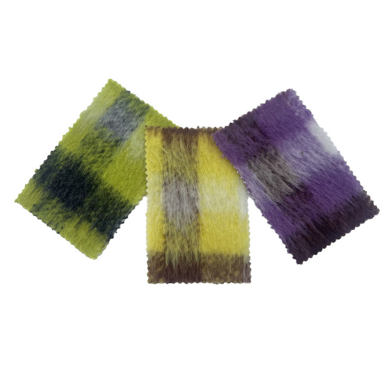 Fabrik ini, yang ditetapkan sebagai artikel 3256, ialah tekstil tweed yang terdiri daripada 20% bulu dan 80% gentian lain. Dengan jisim seunit luas 700 g/m, ia membentangkan pembinaan berat. Permukaan ungu menampilkan corak kotak-kotak yang disepadukan dengan tekstur longgokan panjang, menghasilkan struktur komposit melalui proses tenunan dan kemasan khusus. Teknik pembuatan ini menghasilkan panjang gentian lanjutan pada permukaan, menghasilkan kesan tiga dimensi yang ketara. Komposisi campuran bulu menyumbang kepada sifat penebat haba fabrik dan daya tahan struktur. Ciri teknikal ini menghasilkan bahan dengan isipadu yang besar dan kedalaman permukaan, menjadikannya terpakai untuk kot di mana kehangatan tinggi dan kehadiran tekstur diperlukan.