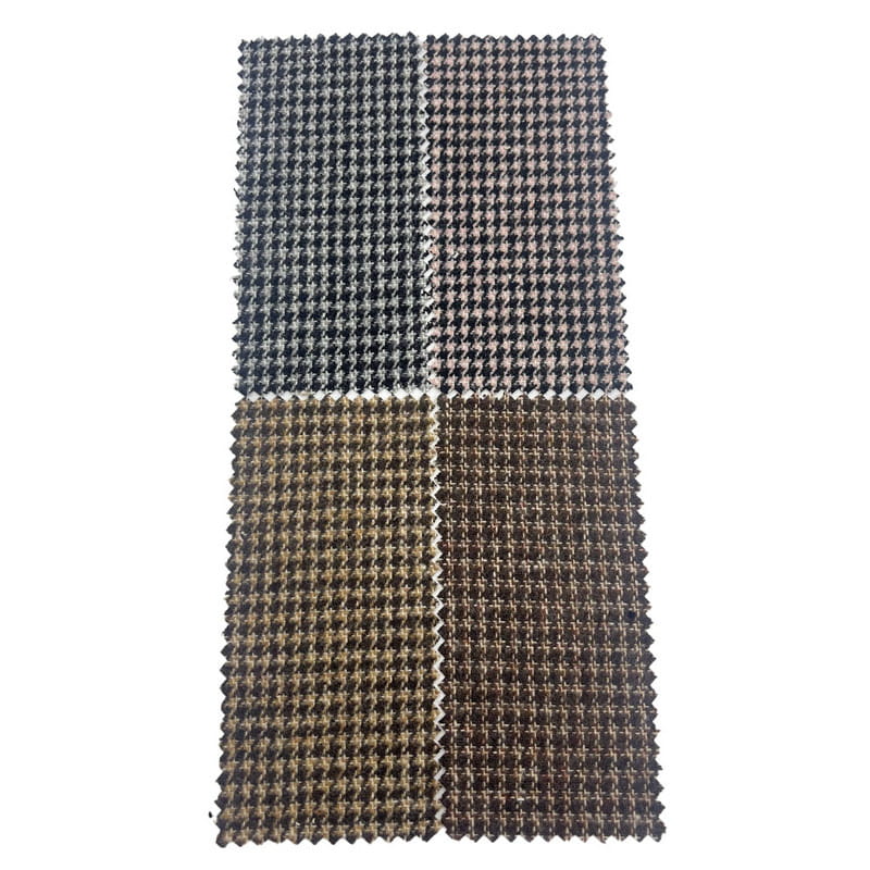 Fabrik ini, yang ditetapkan sebagai artikel 4334, ialah tekstil tweed tenunan yang terdiri daripada 35% bulu dan 65% gentian lain. Dengan jisim seunit luas 450 g/m, ia membentangkan pembinaan berat sederhana. Permukaannya menggabungkan corak gigi anjing dengan elemen semak, mencipta reka bentuk geometri komposit melalui teknik tenunan yang tepat. Kaedah pembinaan ini menghasilkan cek patah yang saling mengunci dengan kontras warna yang ditentukan di seluruh fabrik. Komposisi campuran bulu menyumbang kepada kestabilan dimensi fabrik dan rintangan kedutan. Ciri teknikal ini menghasilkan bahan dengan artikulasi corak yang rumit dan ketahanan struktur, menjadikannya terpakai untuk seluar yang memerlukan corak terperinci dan prestasi jangka panjang.