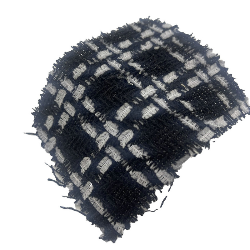 Fabrik ini, yang ditetapkan sebagai artikel 23545, ialah tekstil tweed tenunan yang terdiri daripada 39% poliester, 36% bulu dan 25% kapas. Dengan jisim seunit luas 255 gsm, ia memberikan pembinaan yang ringan. Fabrik ini menampilkan corak kotak-kotak hitam yang dicipta melalui proses tenunan, membentuk grid berstruktur pada permukaan. Campuran poliester, bulu dan kapas menggabungkan kestabilan dimensi gentian sintetik dengan pengurusan kelembapan semulajadi gentian selulosa dan protein. Komposisi ini menghasilkan fabrik dengan ketahanan yang seimbang dan kebolehnafasan. Spesifikasi teknikal ini menjadikan tenunan tweed ini boleh digunakan untuk pelbagai aplikasi pakaian yang memerlukan definisi corak dan keselesaan pemakaian.